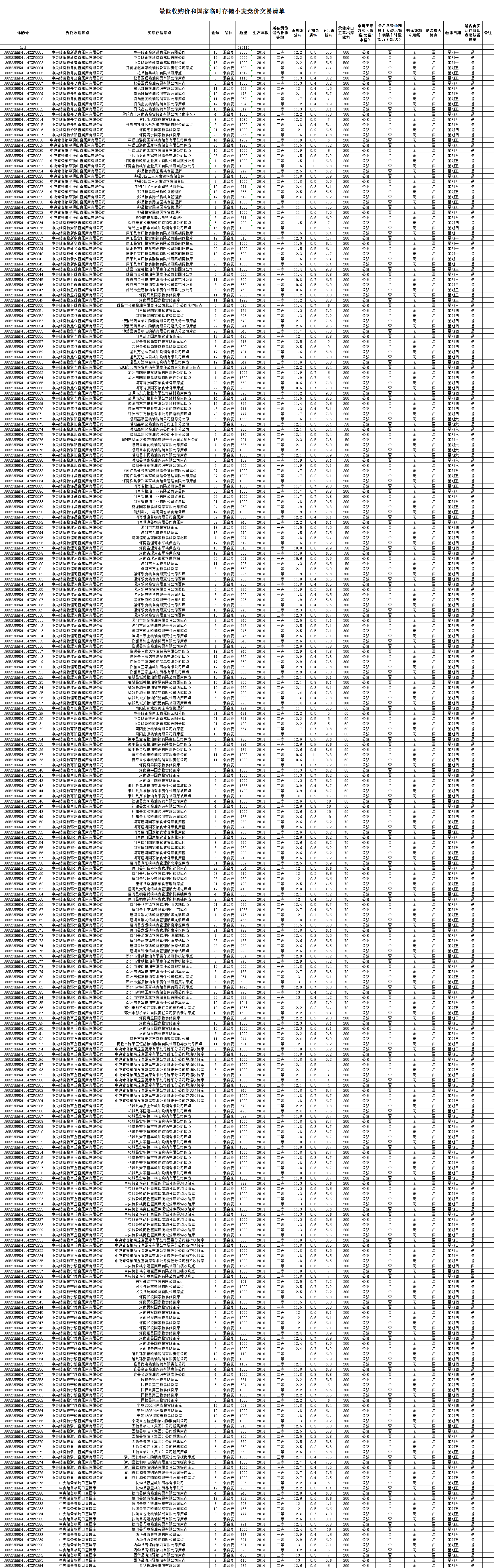 5月23日最低收购价和国家临时存储小麦竞价交易清单