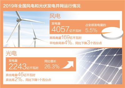 去年风电发电量首破4000亿千瓦时,光伏发电量突破2000亿千瓦时清洁能源更“风光”