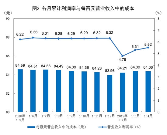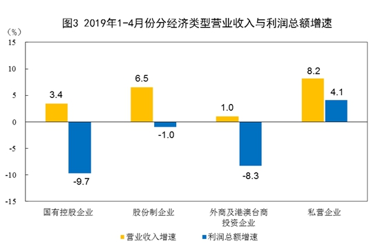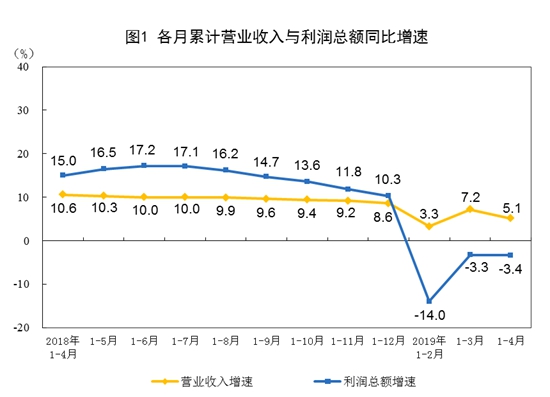 2019年1—4月份全国规模以上工业企业利润下降3.4%